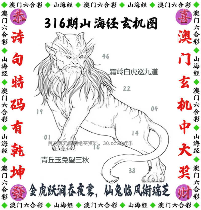 315期:【山海经玄机】开虎04 解释:巫山神犬啸雷霆,瑶池仙豕衔瑞光解狗虎兔 解料:烈焰灵犬守苍原,丹霞瑞猪映晨曦解龙羊鸡 综合:狗龙羊鸡虎兔 主特:08.44.02.14.11.47.09.21.04.40.03.39 |